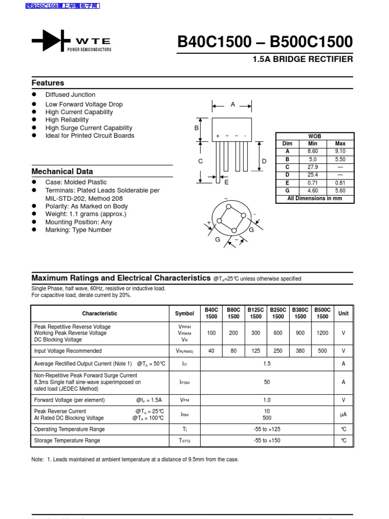 B250c1500 Wiltec from img.yumpu.com Related keyword from full text search system. Vvrms v 4) 40 80. Text in other languages (may differ). B40c1500 thru b500c1500, b40c1500 datasheet, b40c1500 circuit, b40c1500 data sheet : Etc, alldatasheet, datasheet, datasheet search site for electronic components and semiconductors, integrated circuits, diodes, triacs, and other semiconductors. B40c1500 datasheet pdf, b40c1500 pdf datasheet, equivalent, schematic, b40c1500 datasheets, b40c1500 wiki, transistor, cross reference, pdf download,free search site, pinout. Funkschau 18/72 s.652 egon strampe. For capacitive load, derate current by 20%.